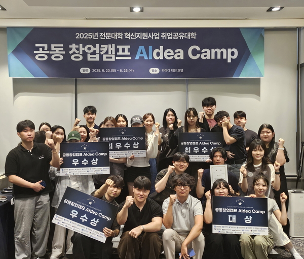 전문대학 혁신지원사업 취업공유대학에서는 공동 프로그램의 일환으로 ‘공동 창업캠프’를 지난 6월 23일부터 25일까지 2박 3일간 개최했다. 이번 캠프는 취업공유대학 주관대학인 동원과학기술대학교가 회원교 재학생 약 30명에게 실전형 창업 경험을 제공하고, 창의적 문제해결 역량과 AI 기반 기획 능력을 함양하기 위한 취지로 기획됐다.